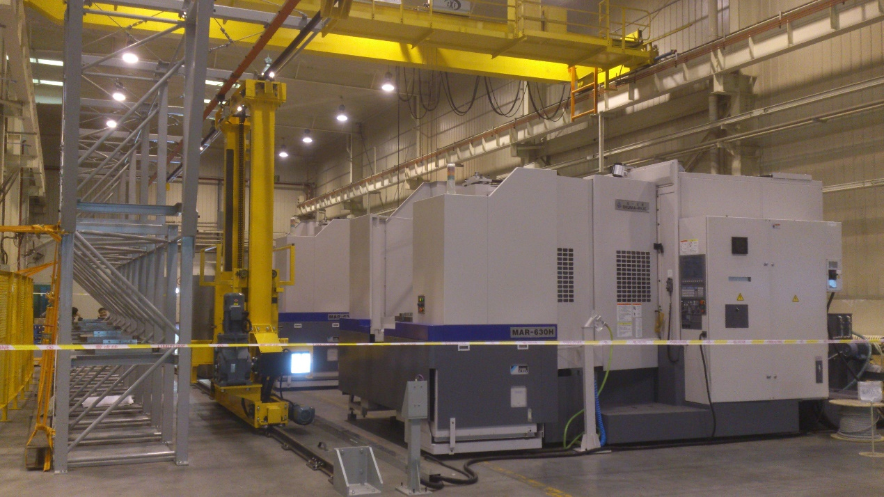 汽車零部件柔性制造系統(tǒng):本項目由兩臺臥式加工中心、1個堆垛機、1個立體物料庫等主要硬件設(shè)備組成。